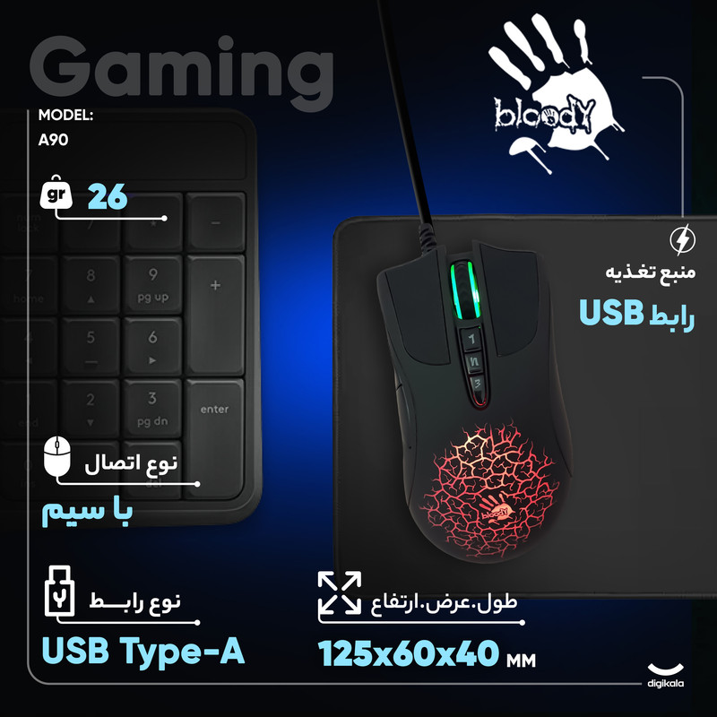 ماوس گیمینگ بلادی مدل A90