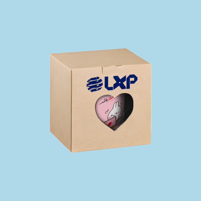 ماگ ارائه شده دارای زیر لیوانی مستطیل و جعبه کادویی قلبی می باشد.