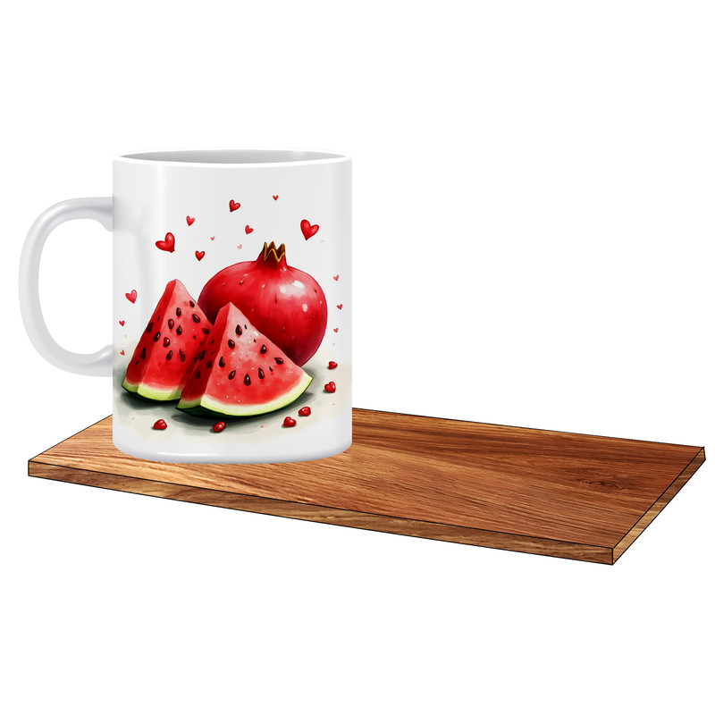 ماگ ارائه شده دارای زیر لیوانی مستطیل و جعبه کادویی قلبی می باشد.
