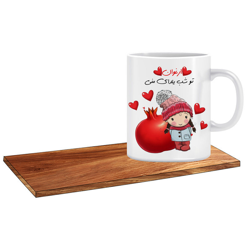 ماگ ال ایکس پی مدل کادوی شب یلدا اسم ارغوان کد 509 به همراه زیر لیوانی
