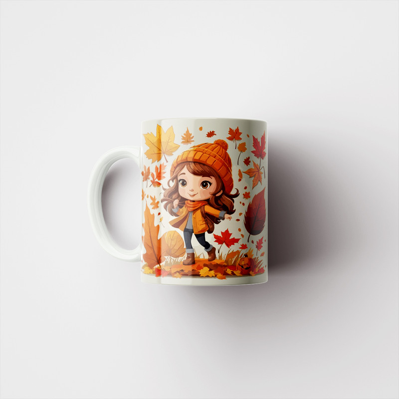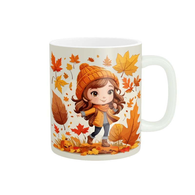 ماگ طرح انیمه ی پاییزی دختر و برگ ها کد 1167
