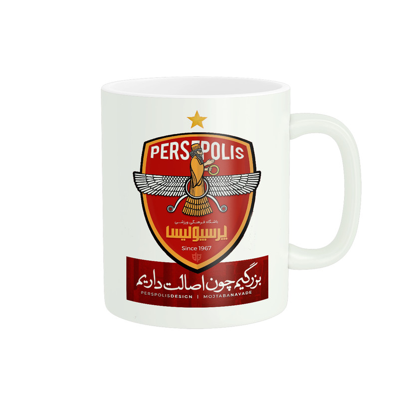ماگ پادآفرین مدل فوتبال لیگ پرسپولیس بزرگیم چون اصالت داریم کد 066