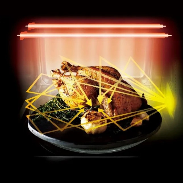 این دستگاه تنها یک مایکروویو نیست؛ بلکه یک اجاق ترکیبی است. با ترکیب قدرت ۱۰۰۰ وات مایکروویو و ۱۰۰۰ وات گریل کوارتز، میتوانید غذاها را به طور همزمان هم بپزید و هم طلایی و برشته کنید. این قابلیت برای پخت مرغ، ماهی یا ترد کردن رویه پیتزا و لازانیا در کمترین زمان ایدهآل است.