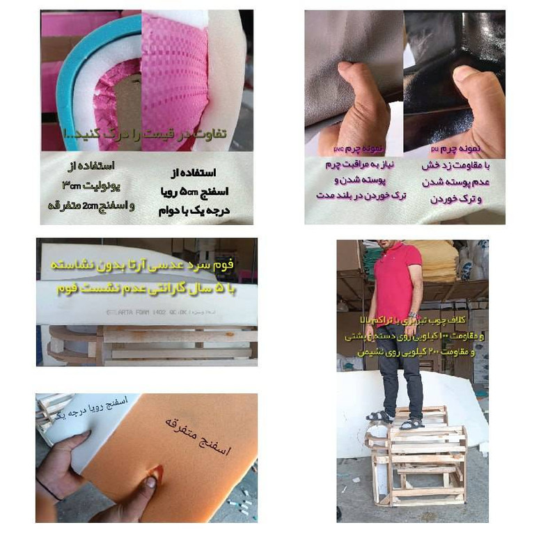 این محصول شامل یک عدد مبل دو نفره چستر خلبانی با ابعاد 165x90x74 و دو عدد مبل تک نفره سزار با ابعاد 100x73x73 است.
