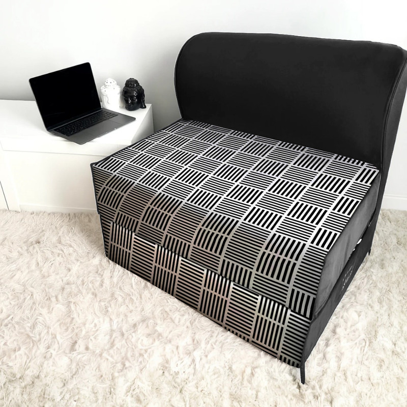 این مبل چون شکل و ظاهری متفاوت و اسپرت دارد در تمام قسمت های منزل از جمله پذیرایی و تی وی روم و اتاق خواب قابل استفاده میباشد و از امتیازات این مبل جمع و باز شدن خیلی راحت و سریع و در کمتر از 1 ثانیه میتوان اشاره کرد و به علت اینکه داخل این مبل از چوب و کلاف های فلزی استفاده نشده ، وزن این مبل به شدت پایین و قابلیت جابه جایی آسان را در سراسر منزل دارد.