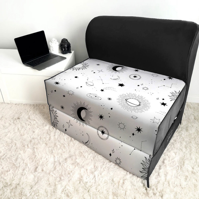 این مبل چون شکل و ظاهری متفاوت و اسپرت دارد در تمام قسمت های منزل از جمله پذیرایی و تی وی روم و اتاق خواب قابل استفاده میباشد و از امتیازات این مبل جمع و باز شدن خیلی راحت و سریع و در کمتر از 1 ثانیه میتوان اشاره کرد و به علت اینکه داخل این مبل از چوب و کلاف های فلزی استفاده نشده ، وزن این مبل به شدت پایین و قابلیت جابه جایی آسان را در سراسر منزل دارد.