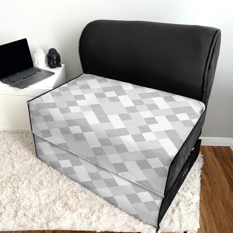 این مبل چون شکل و ظاهری متفاوت و اسپرت دارد در تمام قسمت های منزل از جمله پذیرایی و تی وی روم و اتاق خواب قابل استفاده میباشد و از امتیازات این مبل جمع و باز شدن خیلی راحت و سریع و در کمتر از 1 ثانیه میتوان اشاره کرد و به علت اینکه داخل این مبل از چوب و کلاف های فلزی استفاده نشده ، وزن این مبل به شدت پایین و قابلیت جابه جایی آسان را در سراسر منزل دارد.