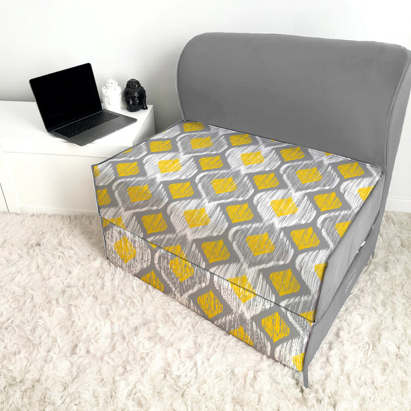 این مبل چون شکل و ظاهری متفاوت و اسپرت دارد در تمام قسمت های منزل از جمله پذیرایی و تی وی روم و اتاق خواب قابل استفاده میباشد و از امتیازات این مبل جمع و باز شدن خیلی راحت و سریع و در کمتر از 1 ثانیه میتوان اشاره کرد و به علت اینکه داخل این مبل از چوب و کلاف های فلزی استفاده نشده ، وزن این مبل به شدت پایین و قابلیت جابه جایی آسان را در سراسر منزل دارد.