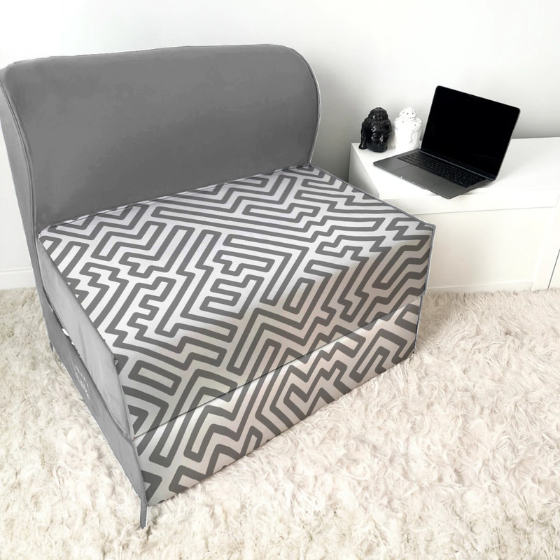 این مبل چون شکل و ظاهری متفاوت و اسپرت دارد در تمام قسمت های منزل از جمله پذیرایی و تی وی روم و اتاق خواب قابل استفاده میباشد و از امتیازات این مبل جمع و باز شدن خیلی راحت و سریع و در کمتر از 1 ثانیه میتوان اشاره کرد و به علت اینکه داخل این مبل از چوب و کلاف های فلزی استفاده نشده ، وزن این مبل به شدت پایین و قابلیت جابه جایی آسان را در سراسر منزل دارد.
