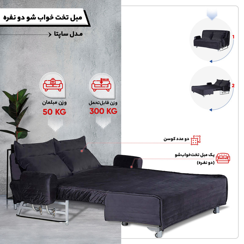 مبل تخت خواب شو دو نفره مدل ساپتا