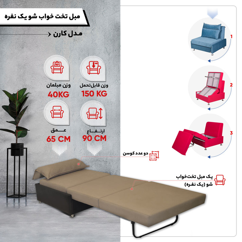 مبل تخت خواب شو یک نفره مدل کارن