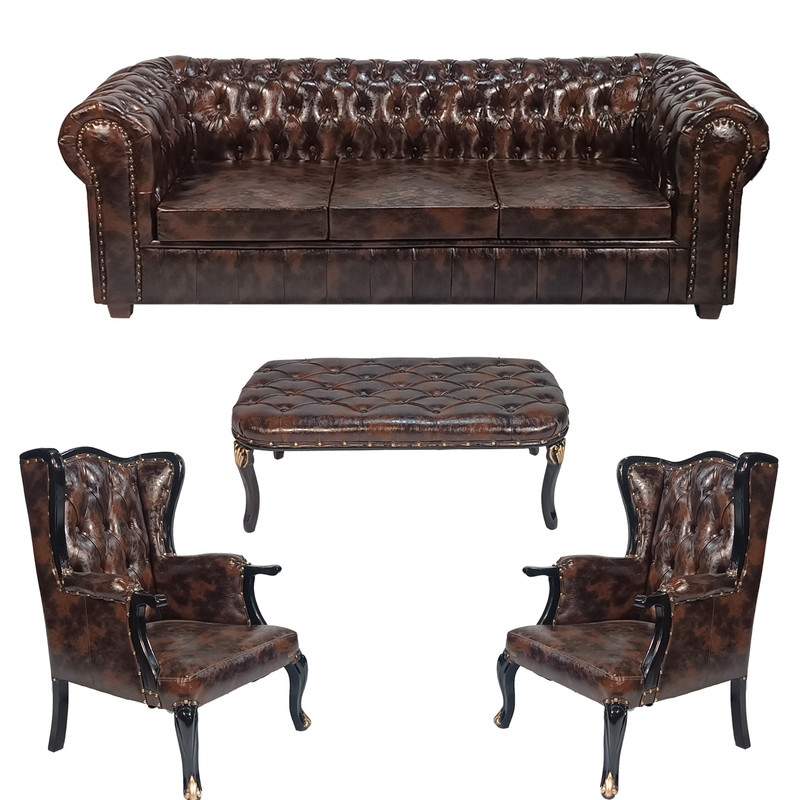 این محصول شامل یک عدد مبل چستر سه نفره با ابعاد 220x90x75 و دو عدد مبل کوئین تک نفره با ابعاد 73x73x100 و یک عدد جلو مبلی کوئین با ابعاد 50x100x42 است.