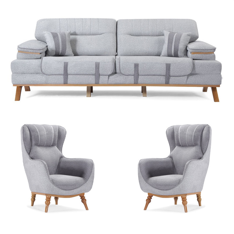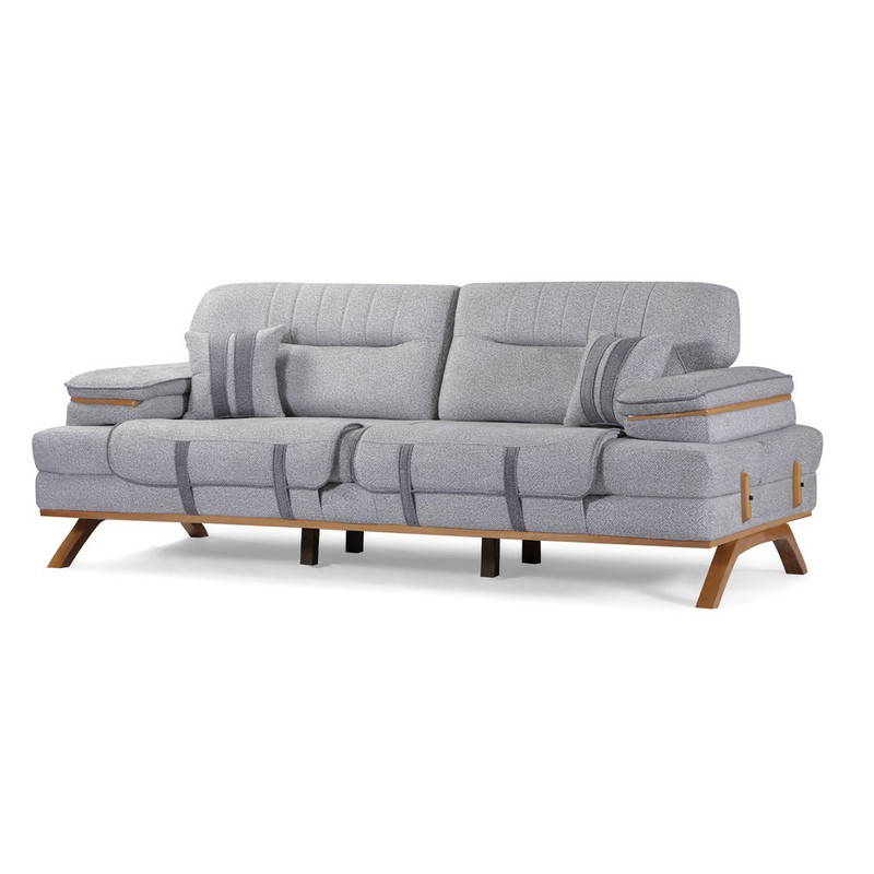 رنگ پارچه داخلی تک نفره ها و نواری جلو کف سه نفره و نواری کوسن ها خاکستری و ثابت میباشد.