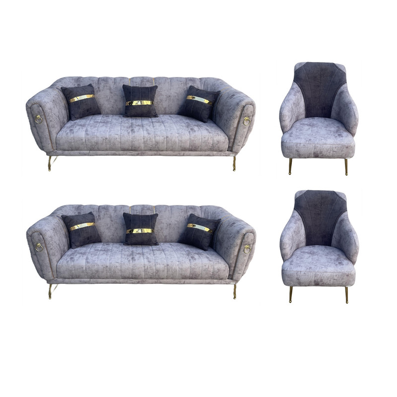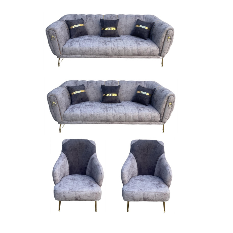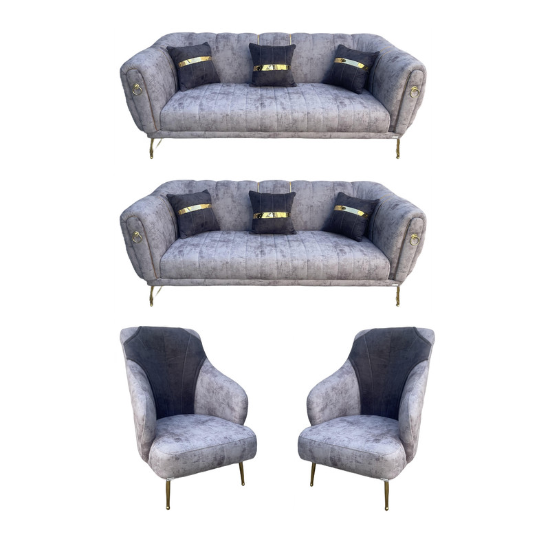 این ست شامل دو عدد کاناپه 3 نفری و دو عدد تک نفره است.| به دلیل نور عکاسی ممکن است رنگها تفاوت جزئی داشته باشند. |شامل 6 عدد کوسن طبق تصویر .| ابعاد در تصاویر قرار داده شده است.| ابعاد حدودی است.| تنوع رنگ طوسی همانند تصویر خواهد بود.