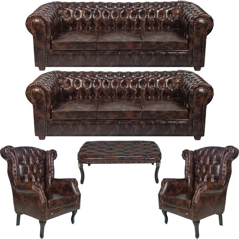 این محصول شامل دو عدد مبل سه نفره چستر با ابعاد 210x90x75 و دو عدد مبل تک نفره با ابعاد 120x65x70 و یک عدد جلو مبلی با ابعاد 100x43x50 است