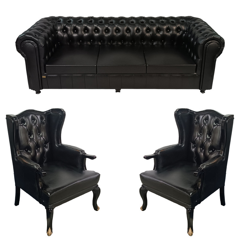 این محصول شامل یک عدد مبل سه نفره چستر با ابعاد 210x90x75 و دو عدد مبل تک کوئین نفره با ابعاد 120x65x70 است