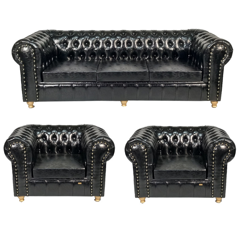 این محصول شامل یک عدد مبل چستر سه نفره با ابعاد 210x90x75 و دو عدد مبل تک نفره با ابعاد 105x90x75 است.