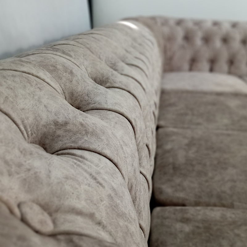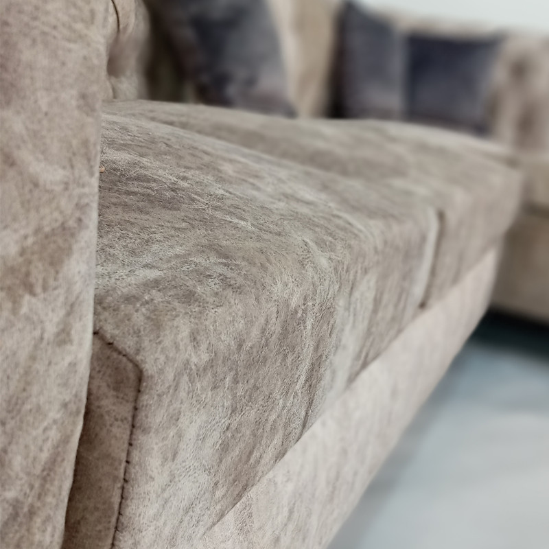 رنگ پارچه مبل کرم و رنگ کوسن قهوه ای است