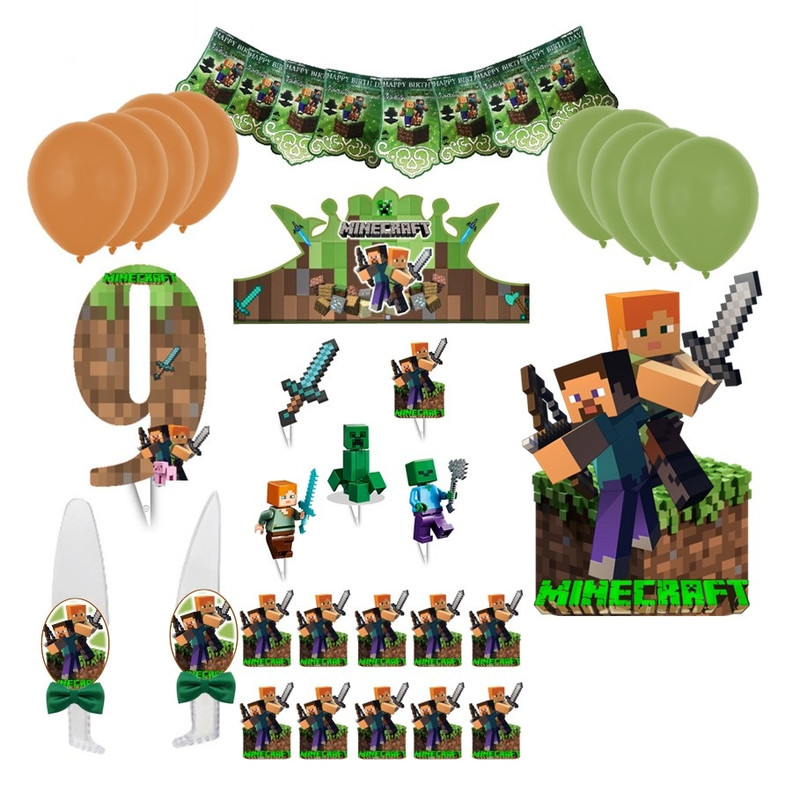 مجموعه 38 عددی دکور تم تولد مدل ماینکرافت کد 09
