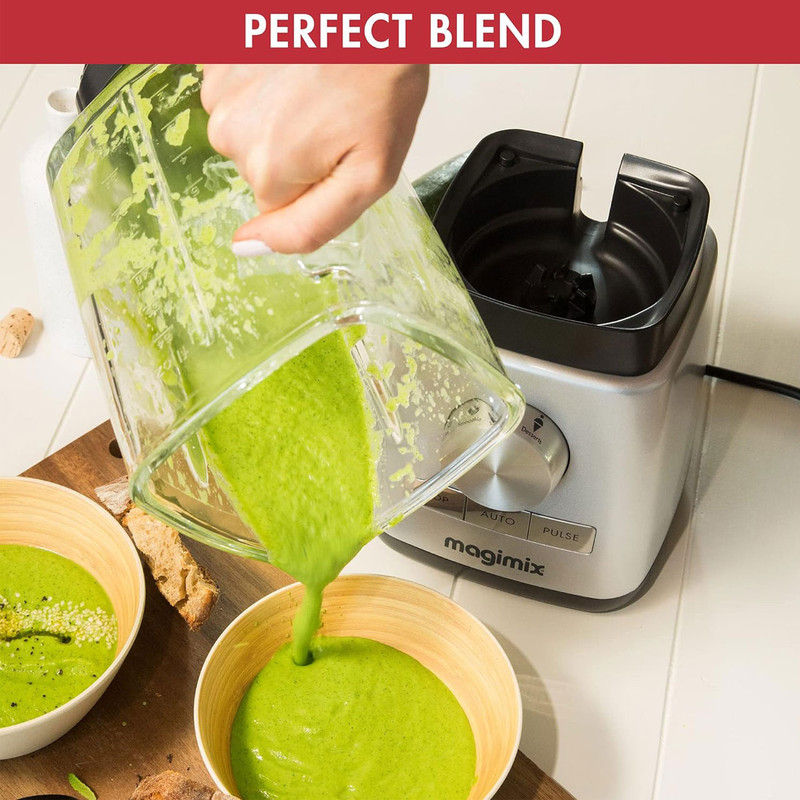 ساخت فرانسه / پارچ شیشه ای بوروسیلیکات بدون BPA / تنها مخلوط کن که گواهینامه علامت Quiet Mark کم صدا ترین را دریافت کرده است / برنامه های خودکار از پیش تنظیم شده. دسر، یخ، سوپ، اسموتی و تمیز کردن خودکار