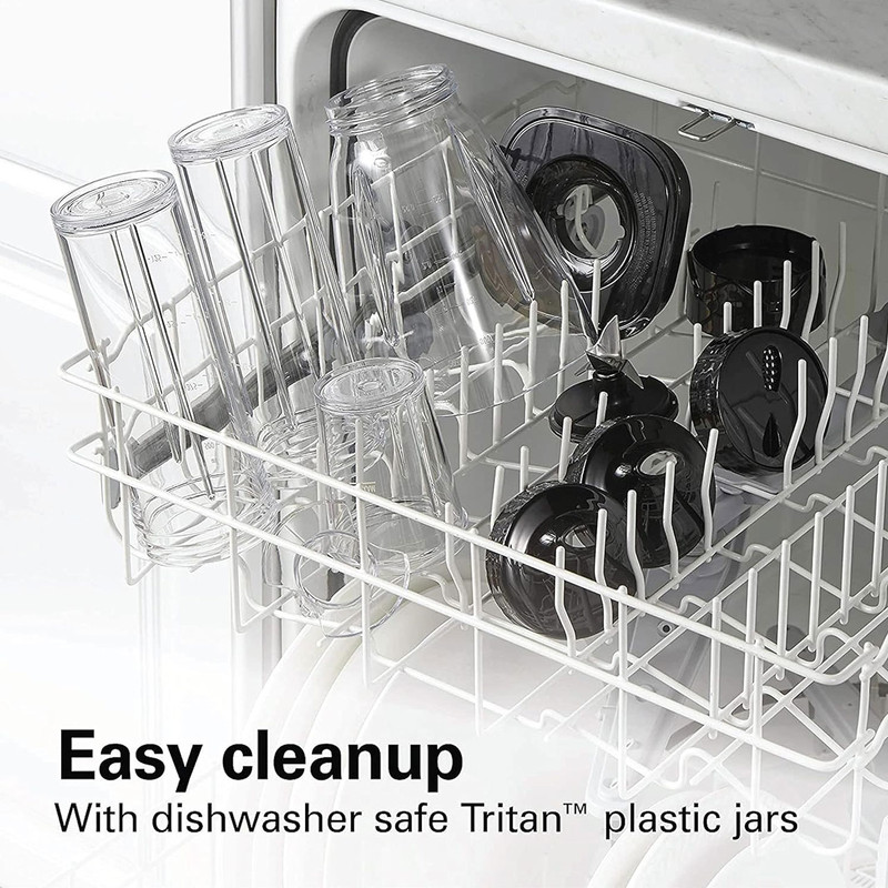 ظرفیت پارچ اصلی 1 لیتر / پارچ آسیاب 236 میلی لیتر / 2 عدد پارچ اسموتی 500 میلی لیتری / جنس پارچ ها تریتان ، فاقد مواد شیمیایی BPA / قابلیت شستشو پارچ ها و تیغه ها در ماشین ظرفشویی