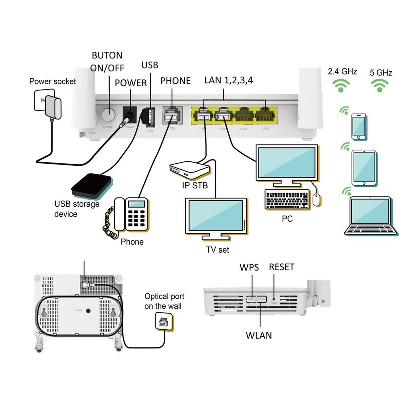 POWER ,PON,LOS,LAN1,LAN2,LAN3,LAN4,TEL,USB--1,USB-2,WLAN,WPS