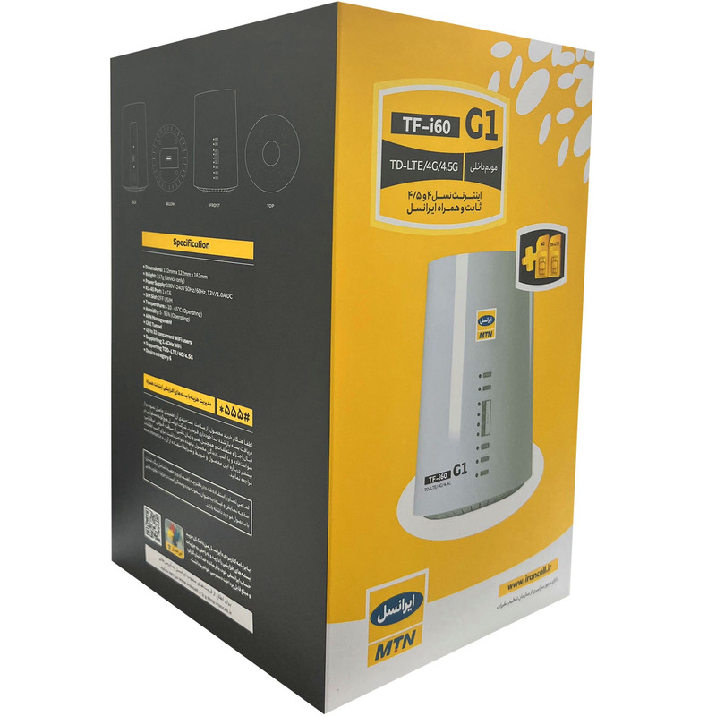 مودم 4G/TD-LTE ایرانسل مدل TF-i60 G1 به همراه سیم کارت TD-LTE و بسته اینترنت 1000 گیگ یکساله