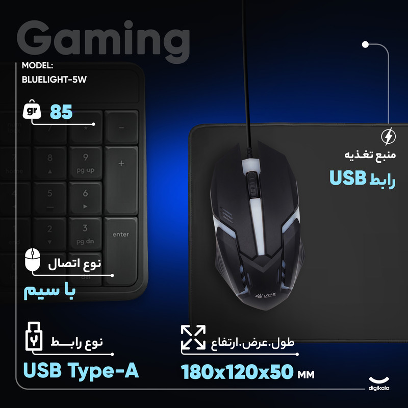 موس مخصوص بازی لوتوس مدل BLUELIGHT-5W کد 2024