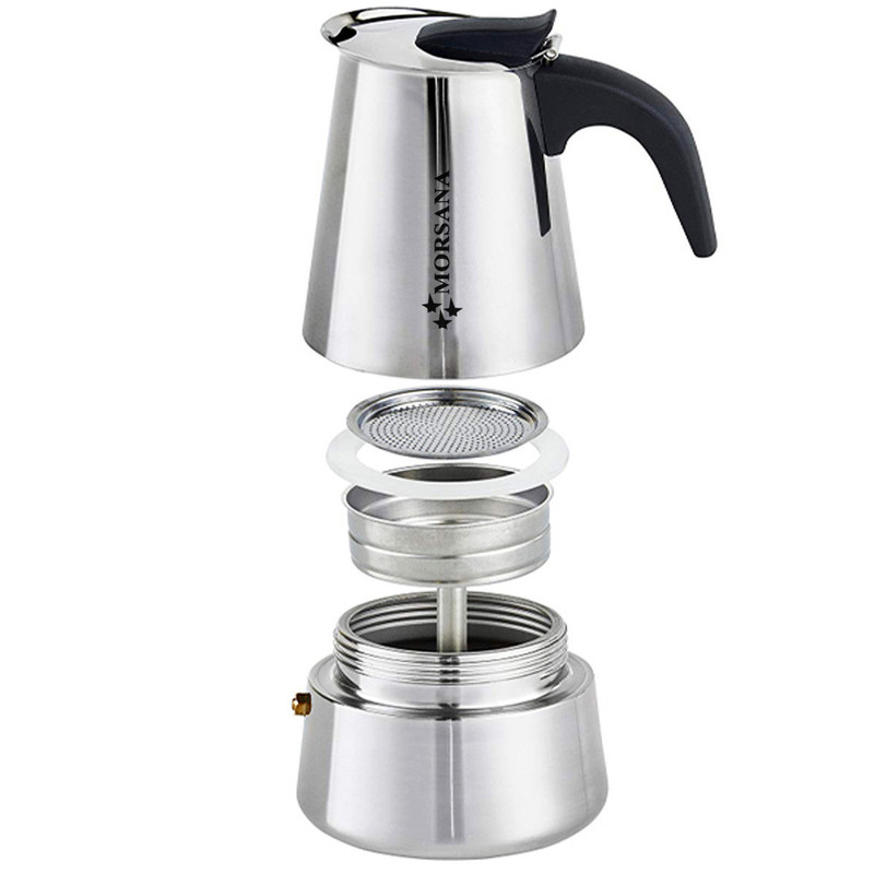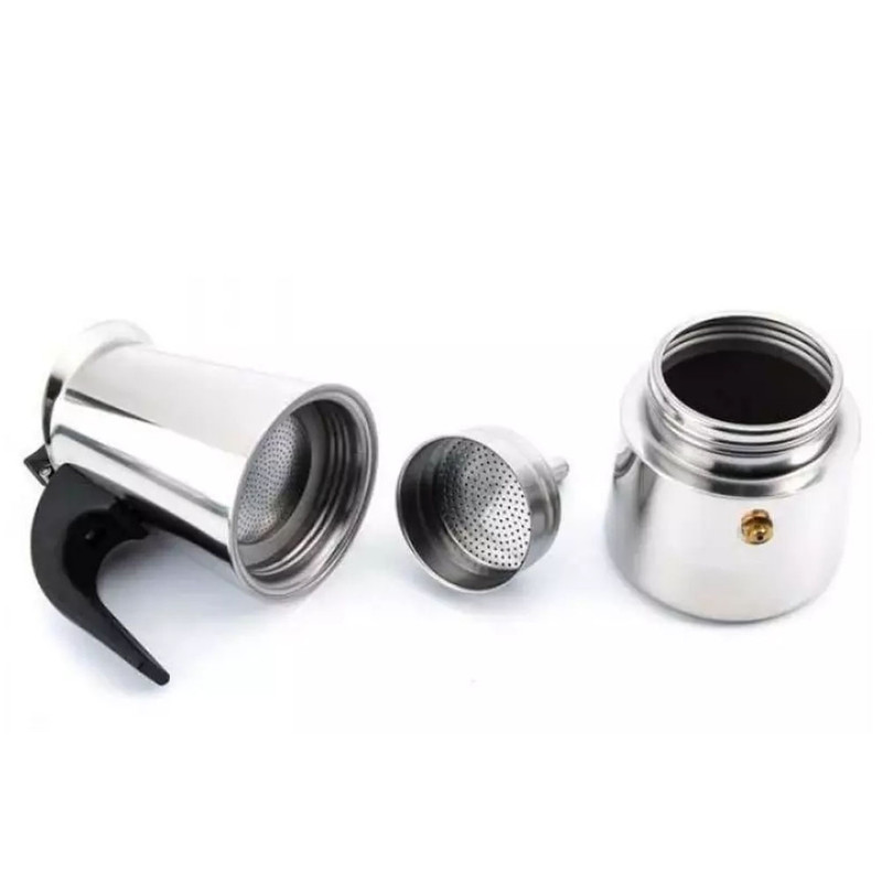 قهوه جوش و اسپرسوساز استیل از نوع رو گازی - جنس بدنه از استیل ضد زنگ، بادوام - دارای دسته ای از جنس باکالیت مقاوم در برابر حرارت - تهیه آسان قهوه در کمترین زمان - دارای ظرفیت 4 نفره - همراه با سوپاپ اطمینان جهت کنترل فشار حاصل از بخار آب - داشتن عمری طولانی برای چندین سال استفاده - شستشوی آسان - صرفه جویی در زمان