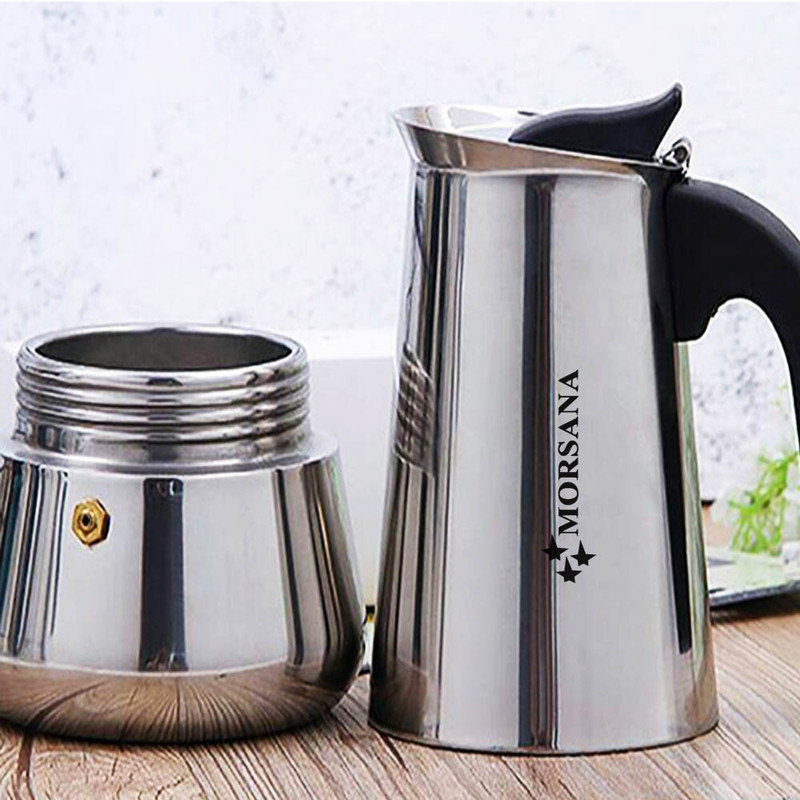 قهوه جوش و اسپرسوساز استیل از نوع رو گازی - جنس بدنه از استیل ضد زنگ، بادوام - دارای دسته ای از جنس باکالیت مقاوم در برابر حرارت - تهیه آسان قهوه در کمترین زمان - دارای ظرفیت 6 نفره - همراه با سوپاپ اطمینان جهت کنترل فشار حاصل از بخار آب - داشتن عمری طولانی برای چندین سال استفاده - شستشوی آسان - صرفه جویی در زمان