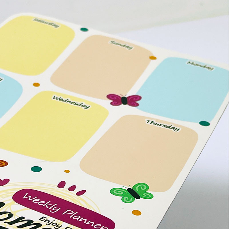 جنس گلاسه 300 گرم کاغذ لابراتوار + ورقه نرم مگنت ضد آب نیست ولی مقاوم در برابر آب هست با ماژیک وایت برد میشود روی این مگنتها نوشت و پاک کرد