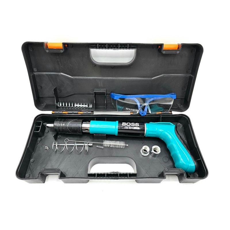 xامکان استفاده در بتن، پلاستیک، ورق های نازک فلزی، چوب و ... را دارد xقابلیت استفاده میخ تا 5 سانتیمتر را دارد xکارکرد ساده و قوی دارد xبدون نیاز به چاشنی انفجاری جداگانه می باشد xبسیار سبک، کم حجم وقابل حمل می باشد xمحصولی جدید و با تکنولوژی به روز جهت جایگزینی برای میخکوب های والتی، کامرکس و ... می باشد xبدون نیاز به چاشنی انفجاری می باشد xدارای کیف حمل، عینک، فرچه، فنر یدک می باشد تفنک میخکوب ابزاری است مشابه تفنگ بادی است. تفنگ میخکوب بتن برای اتصال پلیت ها و صفحات مختلف به بتن می باشد. البته مصارف دیگری از جمله اتصال انواع توری های مشبک و غیره به صفحه های بتنی و مصالح ساختمانی را نیز دارد. این تفنگ ها به وسیله چاشنی میخ موجود در خان تفنگ را با شدت به سمت هدف شلیک کرده و واشری که بر روی میخ قرار دارد صفحه را بر روی بتن نگه می دارد. با قرار دادن چاشنی مخصوص در داخل دستگاه و قرار دادن میخ در محل تعیینشده، میتوانید از این ابزار استفاده کنید. چاشنیهایی که برای این محصول در نظر گرفتهاند در دو نوع و برای کوبیدن میخ در فلز یا بتن هستند. نوع میخی که برای این دستگاه مورد استفاده قرار میگیرد، از گونههای واشردار است. از این دستگاه در شغلهای مختلف که با چوب و فلز سروکار دارند، استفاده میکنند.