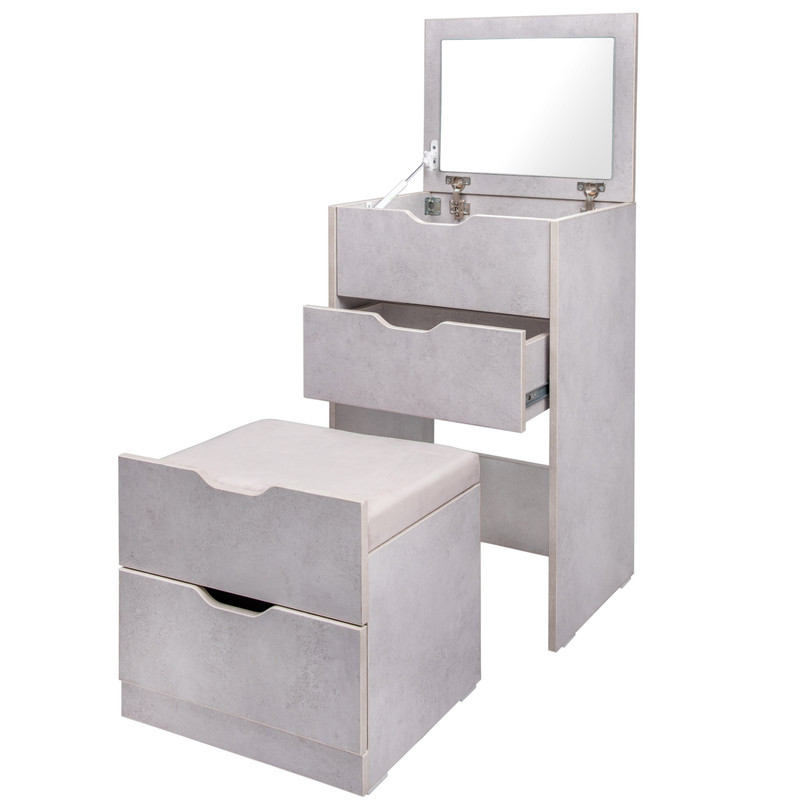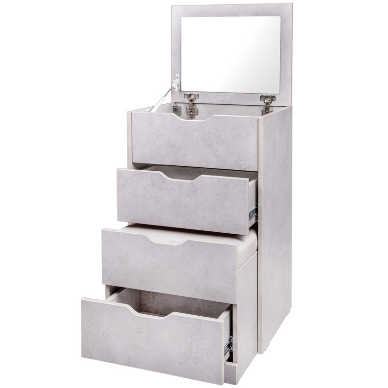 میز آرایش لوما با طراحی مدرن و کمجا، فضای درون اتاق را متحول می کند. شما می توانید تمام لوازم آرایش خود را در 4 محفظه این میز آرایشی بگنجانید و از فضای خود به صورت بهینه استفاده کنید.