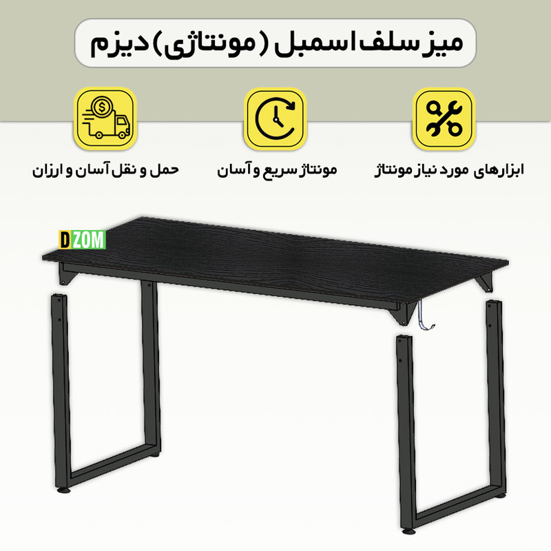محصول بصورت سلف اسمبل (مونتاژی) تولید شده است. جنس صفحه MDF درجه یک طرح چوب با رویه ضد آب می باشد. زیر صفحه MDF کلاف فلزی کار شده است. پوشش رنگ فلز: رنگ کوره ای الکتروستاتیک (یکنواخت، ضد خش و بسیار با کیفیت) حمل و نقل آسان. حمل ارزان و مقرون به صرفه به تمام نقاط کشور. طراحی مدرن