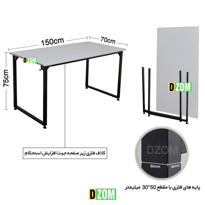 میز اداری دیزم مدل مونتاژی TLD_asm_150×70_W