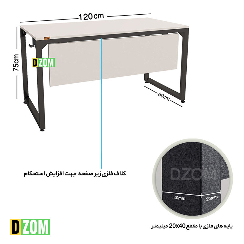 میز اداری دیزم مدل مونتاژی TLD_front_120×60_W