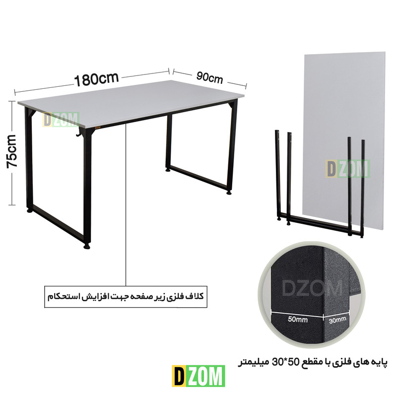 محصول بصورت سلف اسمبل (مونتاژی) تولید شده است. جنس صفحه MDF درجه یک طرح چوب با رویه ضد آب می باشد. زیر صفحه MDF کلاف فلزی کار شده است.پوشش رنگ فلز: رنگ کوره ای الکتروستاتیک (یکنواخت، ضد خش و بسیار با کیفیت) حمل و نقل آسان. حمل ارزان و مقرون به صرفه به تمام نقاط کشور. طراحی مدرن