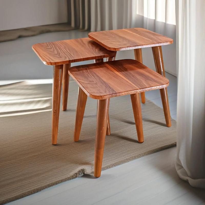 میز عسلی مربع مدل مینیمال 322 کد 11 مجموعه سه عددی