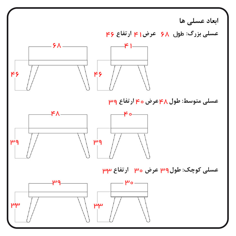 تعداد در بسته: سه عدد میز عسلی در سه سایز مختلف (بزرگ، متوسط، کوچک) •جنس صفحه: MDF با روکش طرح چوب •جنس پایهها: پلیمر ABS با استحکام بالا رنگ •رنگبندیهای موجود: متنوع •طراحی: لبههای صفحه با فرم گرد شده برای ایمنی بیشتر و زیبایی ظاهری •مناسب برای: پذیرایی، کنار مبل، فضای نشیمن، اتاق کار و محیطهای اداری •ویژگیها: قابلیت جمعشدن در یکدیگر برای صرفهجویی در فضا – سبک و قابل حمل •ارسال: بستهبندی ایمن جهت جلوگیری از آسیب در حملونقل.