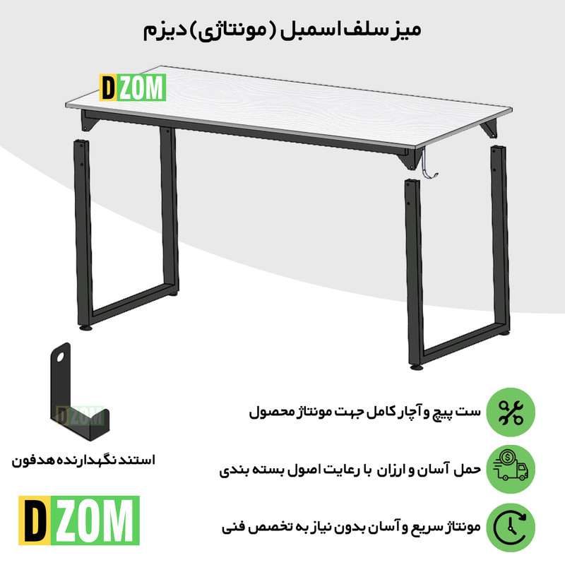 میز مدیریت دیزم مدل مونتاژی TLD_asm_150×80_W
