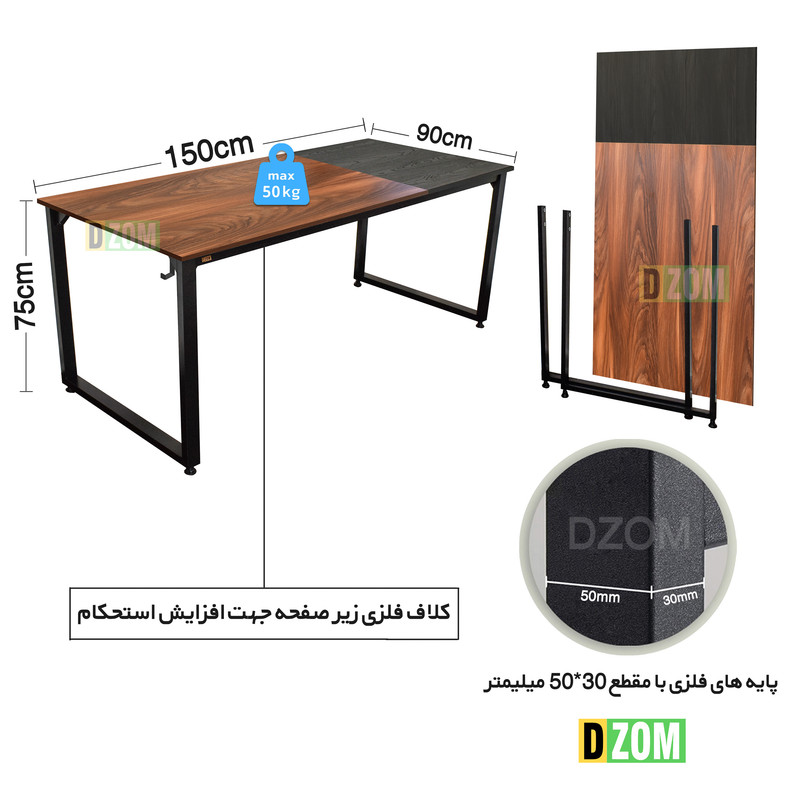 میز مدیریت دیزم مدل مونتاژی TLD_asm_150×90_Tri_BABRN
