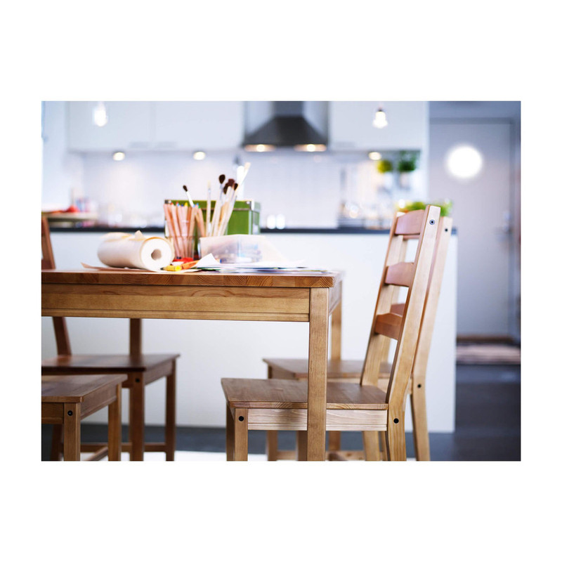 میز و صندلی تمام چوب از بهترین متریال چوب برند ایکیا. میز و صندلی ایکیا JOKKMOKK ساخته شده از چوب کاج با سبکی باور نکردنی و استحکام عالی. کاملا مناسب یک محفل چهار نفره با قابلیت باز و بسته کردن در کمترین زمان ممکن. پوشش لاک آنتیک برای مقاومت بیشتر در برابر شرایط محیطی. پر فروش ترین میز و صندلی 4 نفره ایکیا با قدمتی زیاد و محبوبیت زیاد. صفحات این محصول و قطعات دیگر از فینگر جوینت چوب تشکیل شده که باعث دوام بیشتر و جلوگیری از تاب برداشتن در طول زمان می گردد. همه این ویژگی ها با قیمتی باور نکردنی عرضه می گردد هنر ، طراحی مدرن، سادگی و کیفیت در یک محصول گرد هم آمده ست طراحی و مهندسی اسکاندیناوی کیفیت ساخت بی نظیر