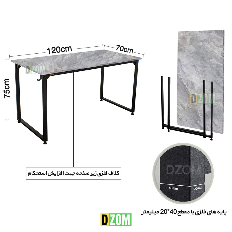 محصول بصورت سلف اسمبل (مونتاژی) تولید شده است. جنس صفحه MDF درجه یک با رویه ضد آب می باشد. زیر صفحه MDF کلاف فلزی کار شده است.پوشش رنگ فلز: رنگ کوره ای الکتروستاتیک (یکنواخت، ضد خش و بسیار با کیفیت) حمل و نقل آسان. حمل ارزان و مقرون به صرفه به تمام نقاط کشور. طراحی مدرن