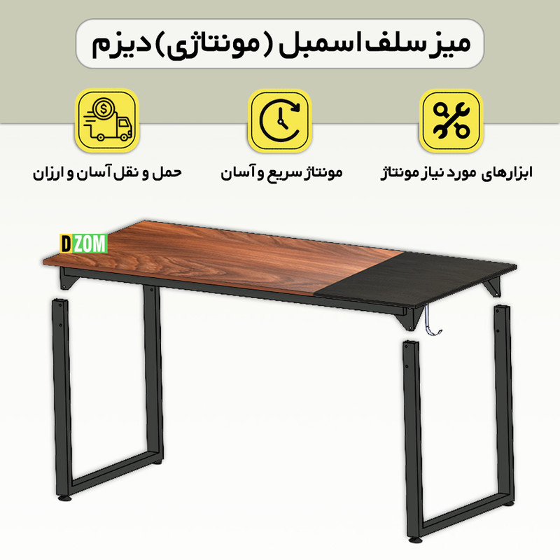 میز کامپیوتر دیزم مدل مونتاژی TLD_asm_120×60_Di_BABRN
