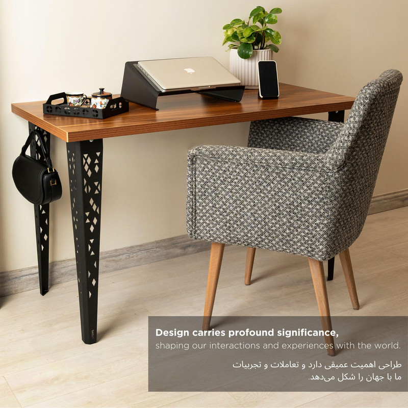 این محصول همراه با آچار نصب، دفترچه راهنمای نصب و یک ویدیو کامل آموزشی ارائه میشود که به شما در فرآیند نصب و راهاندازی کمک میکند. پایههای میز از فولاد مقاوم ساخته شدهاند و با استفاده از تکنولوژی لیزر و خم CNC طراحی شدهاند که حداکثر استحکام و پایداری را فراهم میکند. رویه میز از متریال 100٪ امدیاف درجه 1 صادراتی با روکش با کیفیت آلمانی ساخته شده است که علاوه بر دوام، ظاهری زیبا و شیک به محصول میبخشد. طراحی این میز توسط شرکت Dinaji Limited.co انگلستان انجام شده که استانداردهای بالای طراحی و کیفیت را تضمین میکند و ظاهری مدرن و جذاب به فضای شما میدهد.
