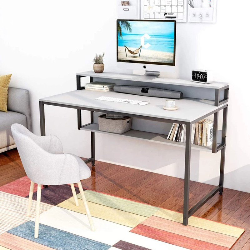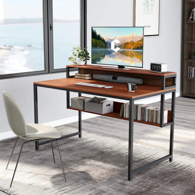 میز کامپیوتر و اداری مهرو دکور با فریم فلزی رنگ کوره ایی و صفحه ام دی اف که تنوع سفارشی برای صفحه میباشد و رنگ فریم ثابت مشکی است