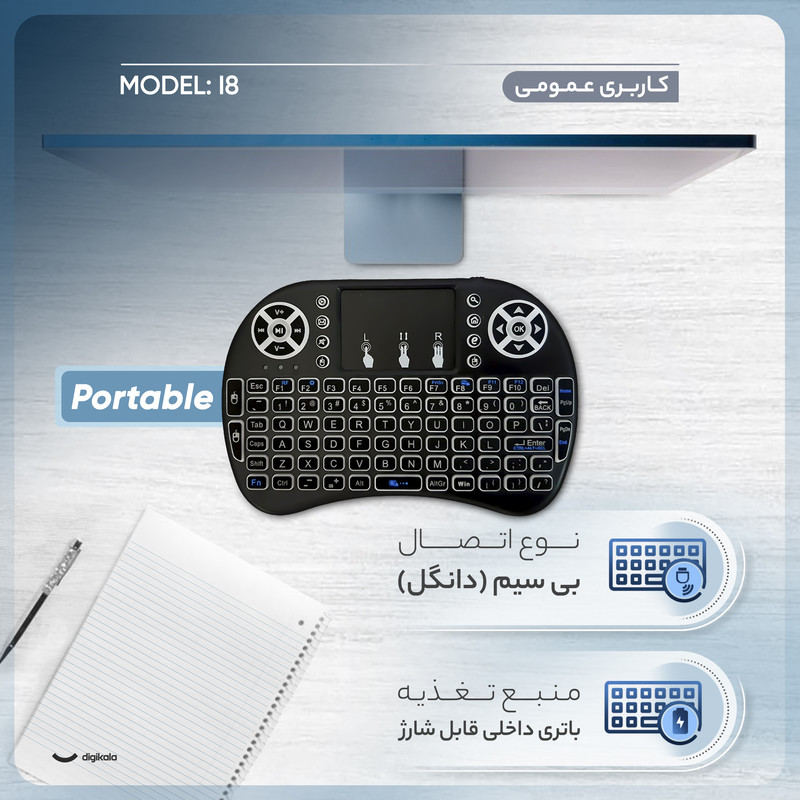 مینی کیبورد بی سیم همراه با تاچ پد مدل i8