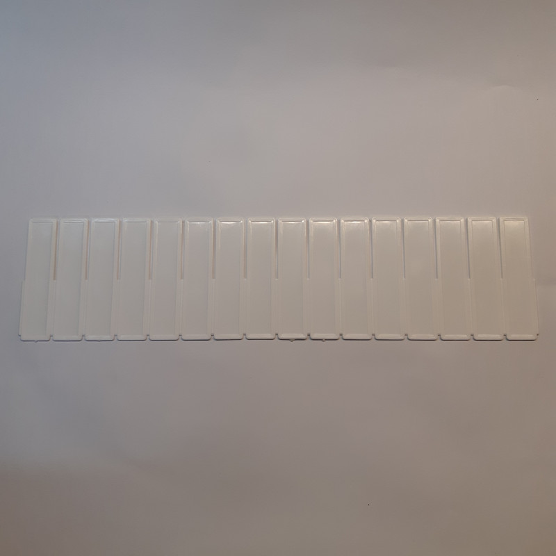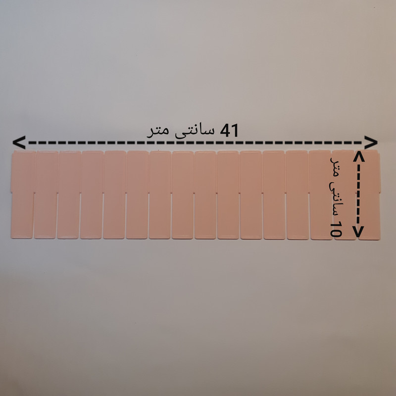 1 بسته تقسیم کشویی آراز شامل 6 ورقه میباشد که هر ورقه شامل 16 خانه برای تنظیم اندازه تقسیم میباشد.