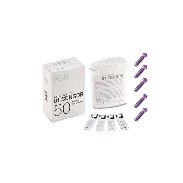 نوار تست قند خون آرکری مدل Glucocard-01 Sensor بسته 50 عددی به همراه سوزن تست قند خون بسته 100 عددی
