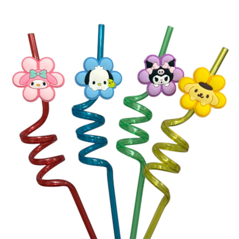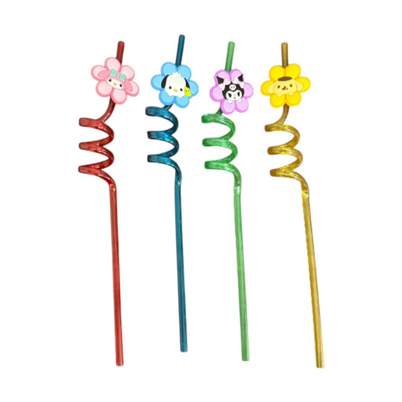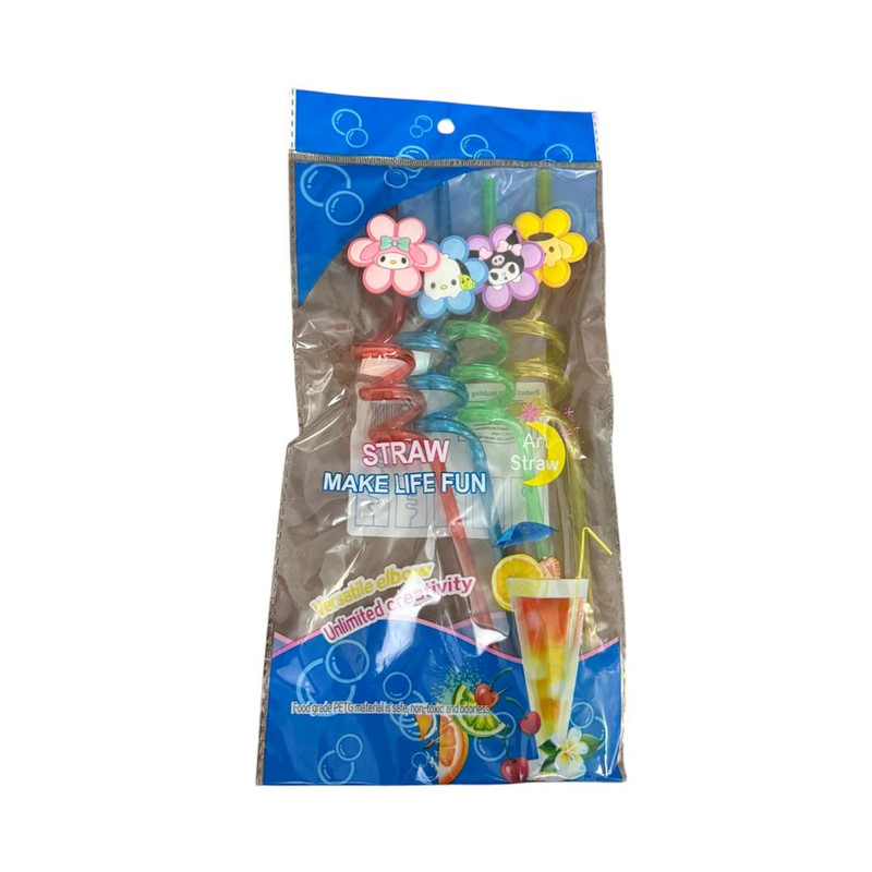 نی نوشیدنی یکبار مصرف مدل کرومی و دوستان بسته 4 عددی